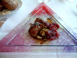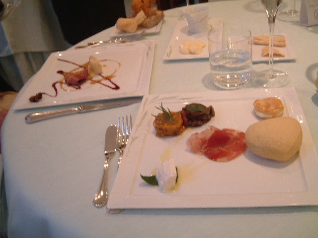 このレストランに行ったのは着いた初日だったので、食事は軽めにしたんだけど、ペンネの魚のダシが下品と言いたくなるくらいに濃厚で、「ああ、イタリアに来たんだな〜」と嬉しくなったよ。オープンテラスのレストランからの海の眺めは本当にキレイで、ロマンチックだった。5つ星ホテルだけあって、他のお客さんの雰囲気も洗練されていた。アメリカ人と思われる客はけっこう軽装だったけどね。 ドン・アルフォンソ★★:サンタアガタ 小さな高台の町に突然現れる、立派な門付きの大きな一軒家のレストラン。 なんか名前聞いたことあるなーと思ったら、ニューオータニにあったことがあるそうで。お店の人はみんな日本に行ったことがあると、自慢げに日本語を披露してくれた。でも最後にテーブルを回っていたシェフとマダムは、日本語どころか英語もさっぱりで、他の常連らしいお客さんたちが仲よくお喋りしているのがうらやましかったよ。