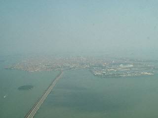 飛行機の窓から見下ろすベネチア |