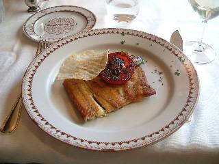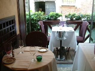 やっと予約が取れた星のレストランヴェネチアにはミシュランの星のレストランがひとつだけあって、予約でいつもいっぱい。キャンセル待ちをしたり、ホテルからプッシュしてもらったりしてもディナーの予約は取れず、結局空いていたのは4時の飛行機に乗らなくてはならない帰る日のランチだった。 ホテルのコンシェルジュのおじさんと綿密に相談した末、ランチの前にホテルは精算して荷物を全部持って水上タクシーでレストランに行き、ホテルからレストランにさくさくサーブするように頼んでもらって、2時前に必ず食事を終えてレストランのそばに水上タクシーに来てもらうよう頼んでおいて、そのまま空港に向かえばそのレストランで食事することも可能という結論に達した。 というわけで、食事代と同じくらいの水上タクシー代覚悟で(名物のゴンドラよりは安いけど)、やっとそのレストラン ダ・フィオーレにやって来ることができた。しかも、ランチの開始時間きっかりで、一番乗りだ。すぐに席はほぼ一杯になったけれど、お店で2番目にいい、川に面したテラス沿いの席に通してもらった。一番いい席には、いかにも常連という感じのイタリア人の老夫婦がやってきた。