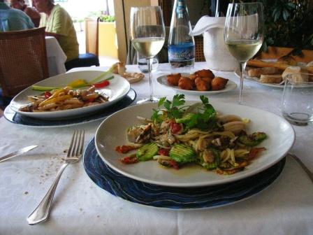 全体的に素朴な家庭料理の趣で、あっさりした品の良い味だ。ワインはローカルの白ワイン(Lassine Feipu dei Massaretti)。もちろん安くて美味い。デザートを食べているとシェフ(中年の女性)が挨拶に来てくれた。家族でやっている店らしい。一昨年行ったアマルフィ海岸やイスキアにもそういう店が多かった。