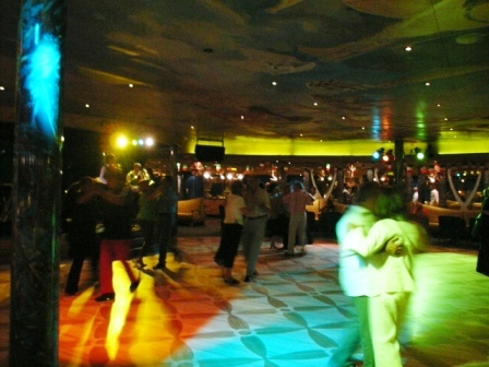 テラスで沈む夕日の中で始まった出航を見守って、さあダンスにお出かけだ。いつものとおり、船の中央にあるダンスホールにでかける。私たちはまだまだヘタクソだし、イタリアのフォークダンスみたいな曲にはついていけないんだけど、みんなが踊っているのを見ているだけで楽しい。
