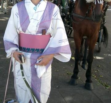 昼はタクシーに乗って、フィナーレリグレから電話で予約しておいたレストランに出かける。パレルモにはミシュランの星のレストランは無いので、スプーンの数が一番多いところを選んだ。パレルモでミシュラン高得点、に敬意を表して、キモノで出かける。着物といっても、白地に紫のトンボ模様の綿紅梅の浴衣に、手ぬぐいの半襟をつけて、ピンクの博多の半幅帯を変わりチョウチョ結びにしていったんだけど。私はYahoo!オークションで落としたこの安物の浴衣がけっこう気に入っている。薄くてぺらぺらなので、暑いときに着るのに丁度いいし、色や模様がきれいで、カラフルな地中海の風景に合いそうな気がするから。