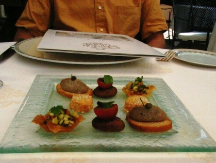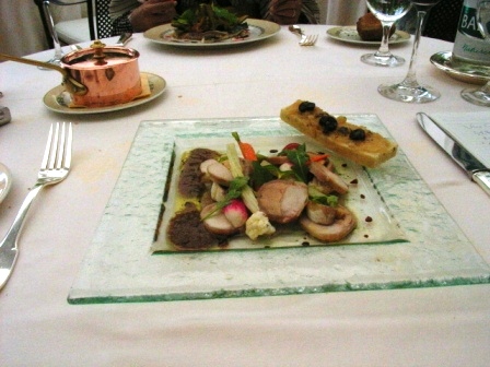 ワインはエクサン・プロバンスの伝統あるシャトー・ド・ボーブレの赤(Chateau de Beaupre, Lamonica 2001)。地元の最高のレストランだからこのシャトーの最も出来がよいものを出しているに違いない。最高でした。