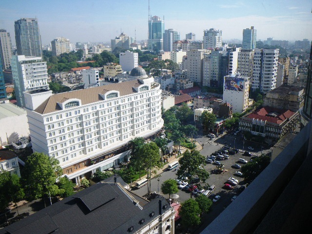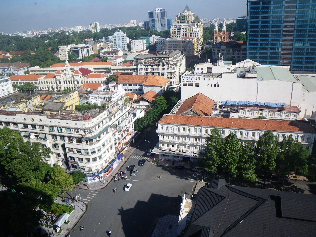 部屋からは市街が一望できて、フランス植民地時代に建てられたバロック建築のりっぱな建物がきれいに見おろせた。目の前に市民劇場、少し離れてサイゴン大教会、人民委員会がある。