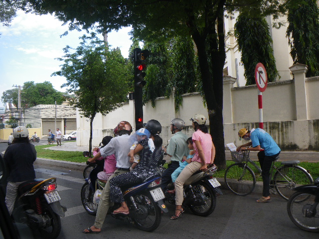 暑い中、バイクの排気ガスにむせ返るようだ。バイクに乗っている人たちは、色柄とりどりのマスクをしているので、私たちも市場で買ってみた。でも綿の分厚い作りのせいで、歩いていると暑くて呼吸が苦しくなってくる。サイゴンの街歩きは、なかなか難行苦行であったよ。