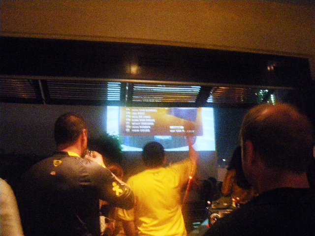 バーでは、隣のビルの壁をスクリーンに見立てた超大画面で試合を中継している。でもそれを無視してバンドの音楽に併せて踊るお客さんたちもいたりして、ごちゃごちゃして楽しい雰囲気だ。