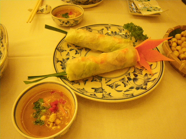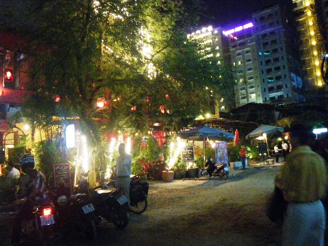 夕食はホテルの近くのレストラン、"Hoa Tuc"へ行った。ここは植民地時代のアヘン工場の跡地にできた4軒のレストランのひとつだそうだ。欧米風のバーが3軒並び、その奥にこのベトナム料理屋がある。お店の人たちは、みな流暢な英語でいろいろ説明してくれるのも面白かった。何よりオープンエアのスペースがあるのが、エアコン嫌いの私の好みにぴったり。夜になれば風が吹いて、東京と違って涼しくなるのがよかった。