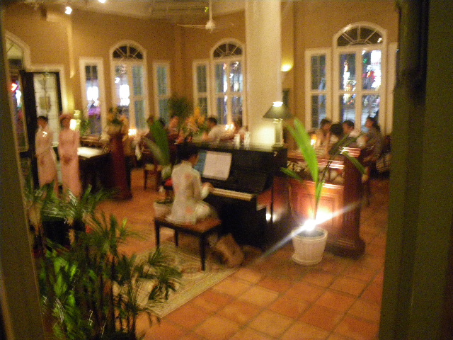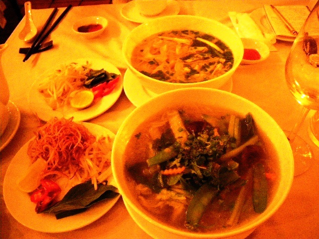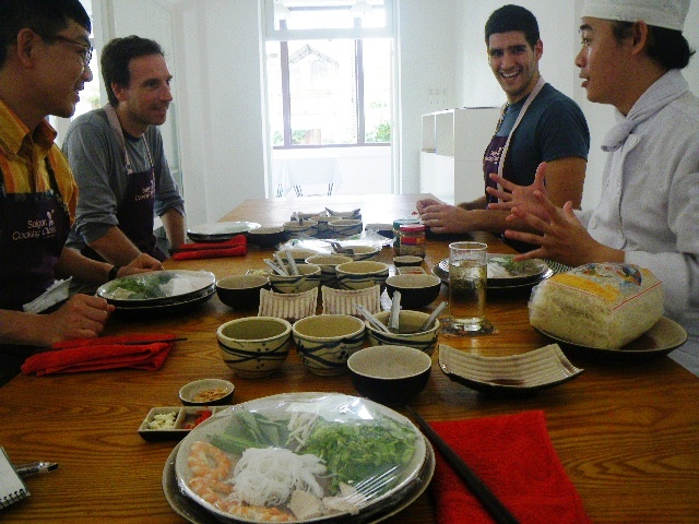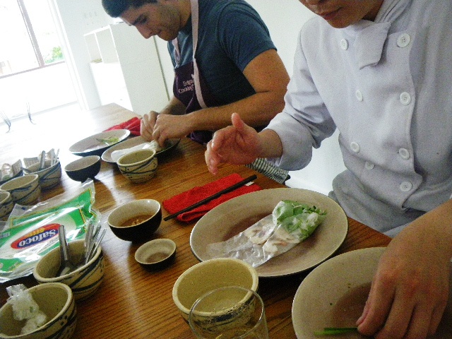 4日目.お料理教室へ! お料理は、定番の「生春巻き」と、見るのも珍しい「バナナの若芽サラダ」と、「ジャスミンライスチャーハンの蓮の葉包み」。1品に1時間ほどかけて、作っては食べる。終わる時にはおなかがいっぱいになったよ。。 こちらの店は1階ではピアニスト、2階ではベトナム民族楽器を弾く楽団が演奏をしていたんだけど、どちらも上手だった。特に民族楽器のほうは、珍しくて面白いし、雰囲気も盛り上がったよ。 今回のベトナム旅行では、食事は庶民が集うところからガラ空きの高級レストランまで色々行ったけど、どこで食べても生野菜がたっぷりのベトナム料理は、さっぱりして口に合ってよかった。最初は水当たりが怖かったけど、これだけ清潔できちんとしたお国柄を見るにつけ、お腹は壊れないだろうなと思えてきたし。何せ暑いんで、ビールすら氷を入れたグラスと一緒に持ってきてくれるのだけどね、これがとっても魅惑的でおいしいのだ。そして、お腹を壊すこともなかった。 有名なベトナム雑貨は、実はマーケットよりスーパーの方が安かったりすることも発見した。マーケットでシルクのミニワンピースを買ったんだけど、夏のお気に入りの一枚になった。試着もせずに買ったけれど、ぎりぎりジッパーが上がるので、ほんとうにラッキーだったよ。 町中に若い人とバイクがあふれているベトナムだけれども、目の前でバイクの事故も目撃した。集団で走っているバイクが、信号で急に止まった時に、ちょっとした玉突きのようになって女の子がバイクから落ちたのだ。軽く頭を打ったらしくなかなか動けない女の子を周りのバイクが囲んで対向車線から来る車から守っていた。そして、女の子は立ち上がり、またバイクにまたがり、走りだした。女の子を囲んでいたバイクも、それぞれの方向に散っていった。 それを真正面で見ていたんだけれども、なんだか今のベトナムを象徴するような、そんな光景を見たように感じたよ。 |