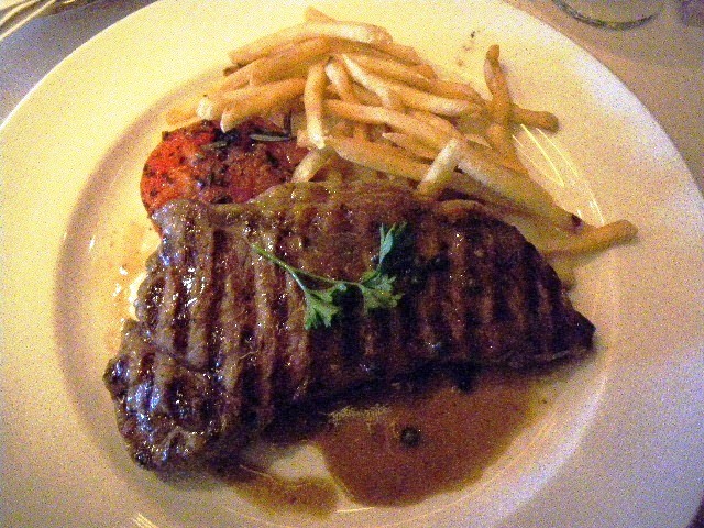 ショーの時間との兼ね合いで、夕食の予約時間を変更したら、ガブリエラの担当エリア以外のテーブルになってしまったのでGはプリプリ怒っている。 しかも私が頼んだポークチョップが固いので、柔らかいよと喜んでいるビーフステーキも分けて頂戴と言ったら、余計に怒り出した。やれやれ、ちょっとくらいいいじゃないの。