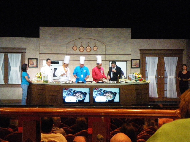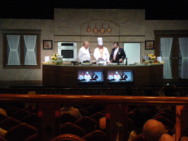 今日は昼間に、この船のレストラン部門を仕切るお2人、エグゼクティブ・シェフと給仕長の約1時間のショーがあるというので楽しみにしていた。
