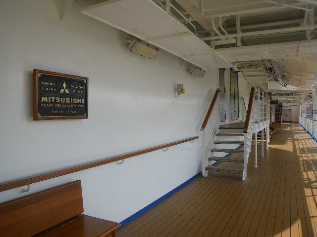 毎日走ったデック・セブン。この船を造船した三菱重工のプレートがある。