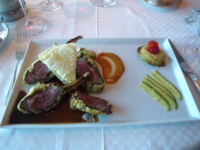 ラムのカレー粉入りパン粉焼き、鹿のステーキ
