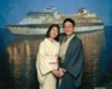 2日目のフォーマルナイトと同じ新中古品で買ったうぐいす色の絽の小紋を着て、絽塩瀬の帯を締めて、インフィニティの大きな写真をバックに記念撮影をしてもらう。思わず笑っちゃうようなポーズを色々させられるのが面白くって、私はけっこうこの撮影が好きだ。撮られるだけでできた写真を買わなければお金はかからないし…。