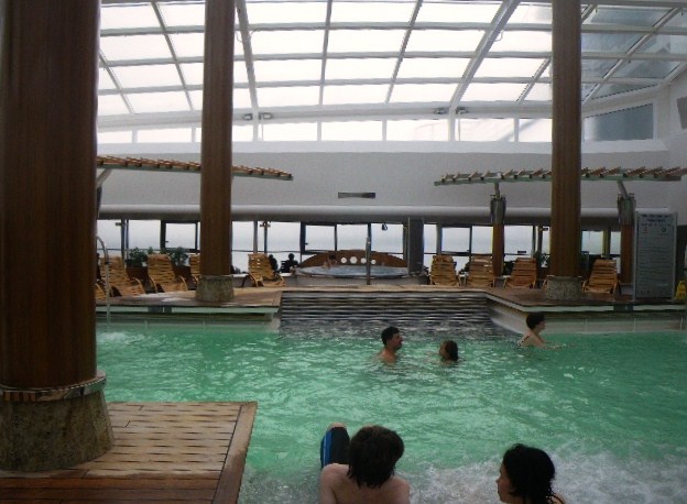 このプールは午前と午後と1時間だけ子供にも開放されるんだけどね。10時になって待ちかねたように入ってきた子供たちは、揺れるプールと大波に大はしゃぎしてた。
