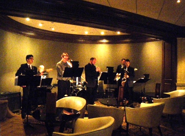 終わったら夜11時半になってしまったけれども、熱気ムンムンの会場にいてのどがカラカラに乾いたので、今度は5階のバーに行く。そこではさっきまでシアターで演奏していたはずのビッグバンドがモダンジャズを演奏している。