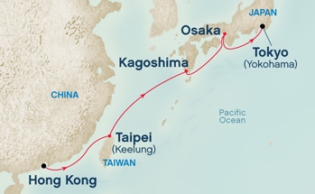 このコースでは4月22日に香港を出発して台北に寄った後、4/24鹿児島、4/27大阪に寄港して4/29に東京で下船です。オーシャンビューなら15万円、バルコニー付きは17.6万円と、日本周遊クルーズよりは割安です。
