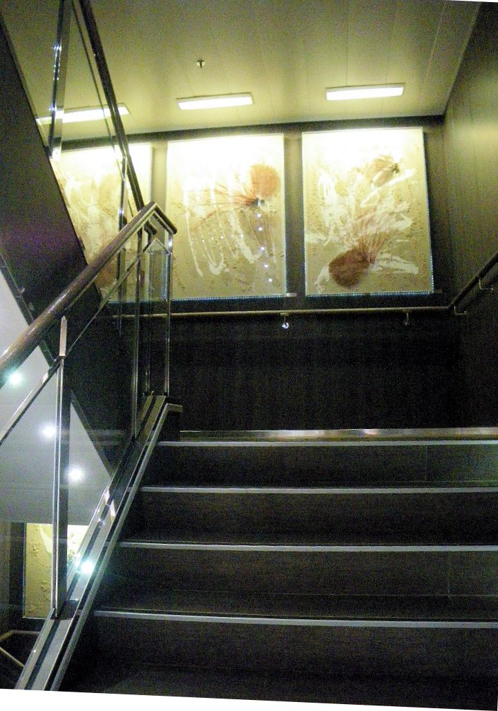 船がコンパクトなので移動距離が少なく、船内で迷うことはなかった。何か部屋に忘れても、すぐに戻ることができて便利だった。踊り場のアートがかっこいい階段は、急すぎて怖かったけど。