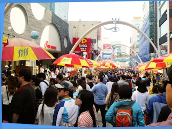 チャガルチ市場のインフォのアジモニ羅暎愛(ナ・ヤンイ)さんと、旅行客でごったがえしている釜山の通りを歩く。羅さんは「お財布に気を付けてね」と言いながら、人にぶつかることなくすいすいと通り抜ける。すごいテクニックだ。