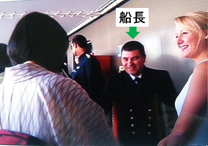 船長は1万トンくらいの船なら引っ張って歩けそうな、がっちりして力持ちそうな人だった。その分首が無くて、パーティーの時は蝶ネクタイが首に食い込んじゃって、似合ってなかったよ。関西弁率が高かった今回のクルーズで、かっこうの笑いのネタになっていたのは言うまでもない。