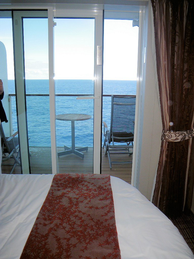 クルーズではやっぱり甲板に出て海の風に当たりたいし、朝日や夕日を飽きることなく見ていたい。西に進むクルーズの時に取る部屋は、右舷にすべきか左舷にすべきか、悩むなあ。