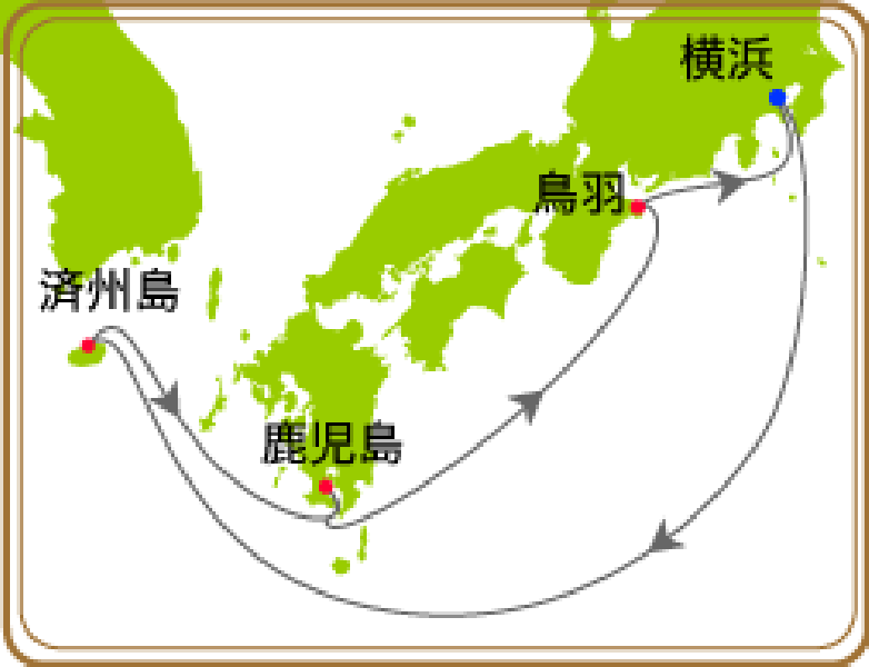 この舞鶴発のクルーズはその第4回目で、境港から釜山に行き、長崎、鹿児島に寄港した後、宇和島、広島、玉野と瀬戸内海をゆっくり通過して大阪で下船です。