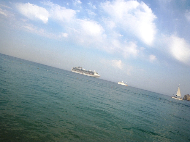 カボ・サン・ルーカスはロス・カボスと呼ばれる地域で、バハカリフォルニア半島南端の砂漠を開発したビーチリゾートだ。船で近づいていくと、緑がほとんどない乾いた土地に、無理やり建てたような巨大なホテルがいくつも並んでいるのが、遠くからよく見えた。
